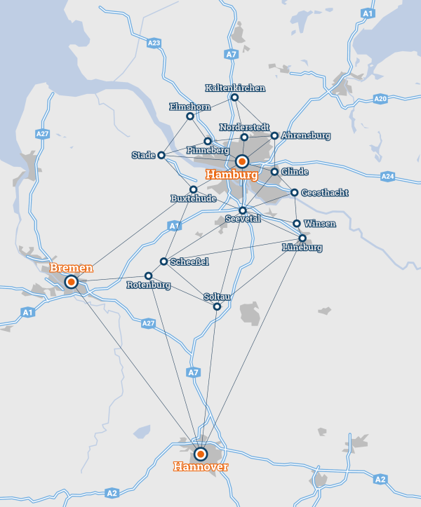 Auf dieser Karte siehst Du, wo in Norddeutschland wir für Dich im Einsatz sind.